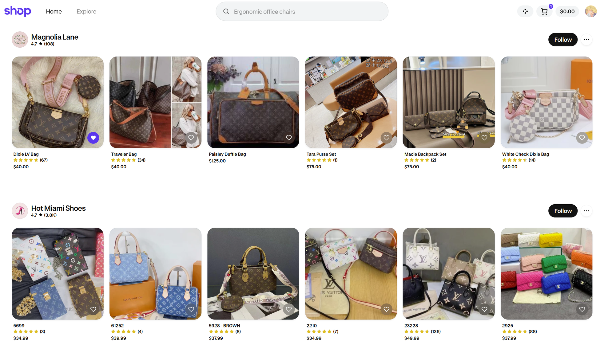 You would think counterfeits would be hard to find. Surely platforms like Etsy or Amazon or the Shop app wouldn’t let fake goods flood their stores, right? About that...