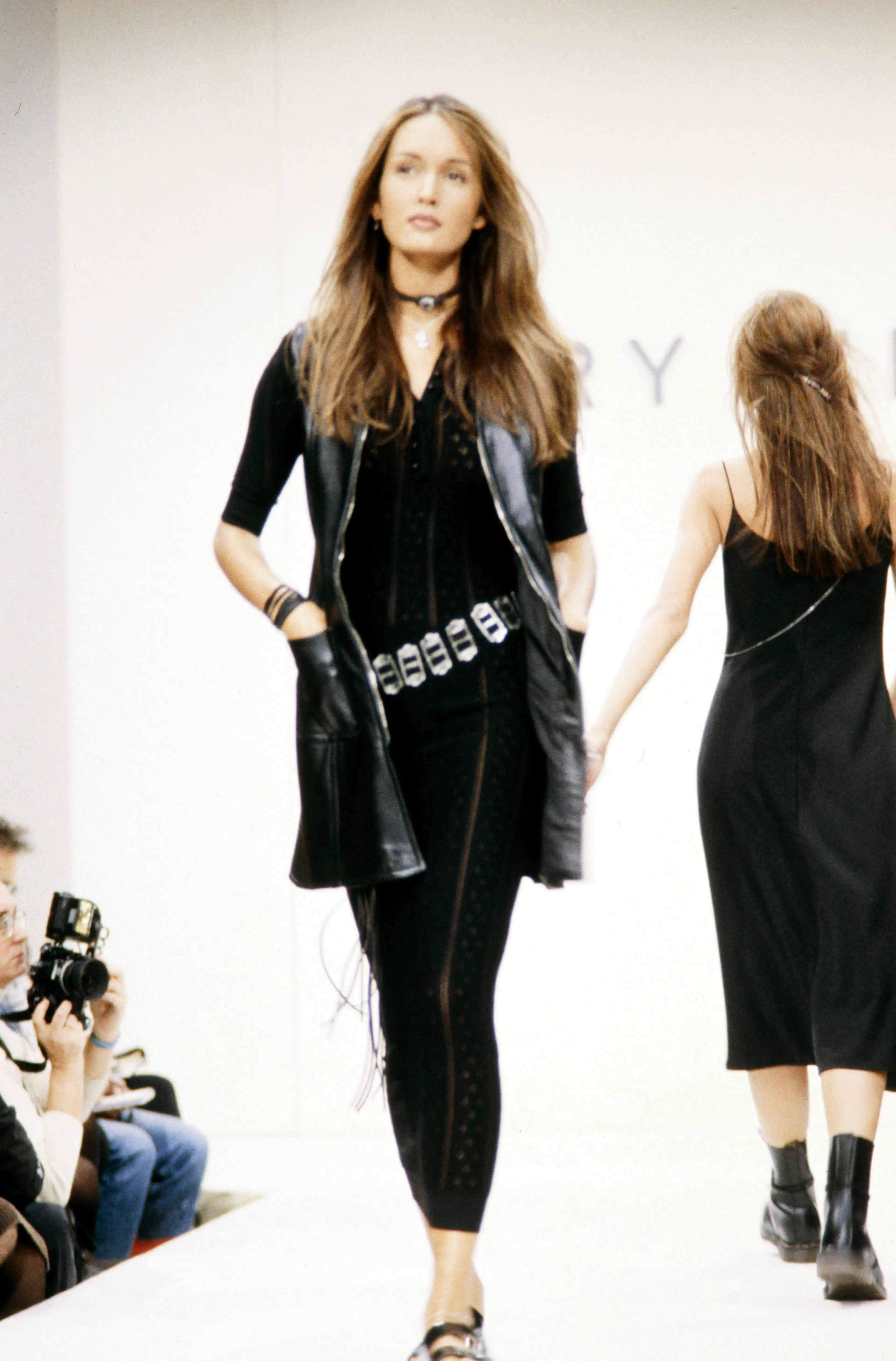 While the younger designers were welcoming grunge, the establishment reacted as if someone had released a raccoon into the front row. The old guard didn’t just dislike it, they recoiled entirely. Wintour was expectantly dismayed, calling the look unfashionable, unflattering, and generally beneath Vogue’s glossy standards. Carlyne Cerf-de-Dudzeele practically went feral, insisting she “hated grunge,” muttering about big boots and “poverty looks” like the style was personally offending her sensibilities.
